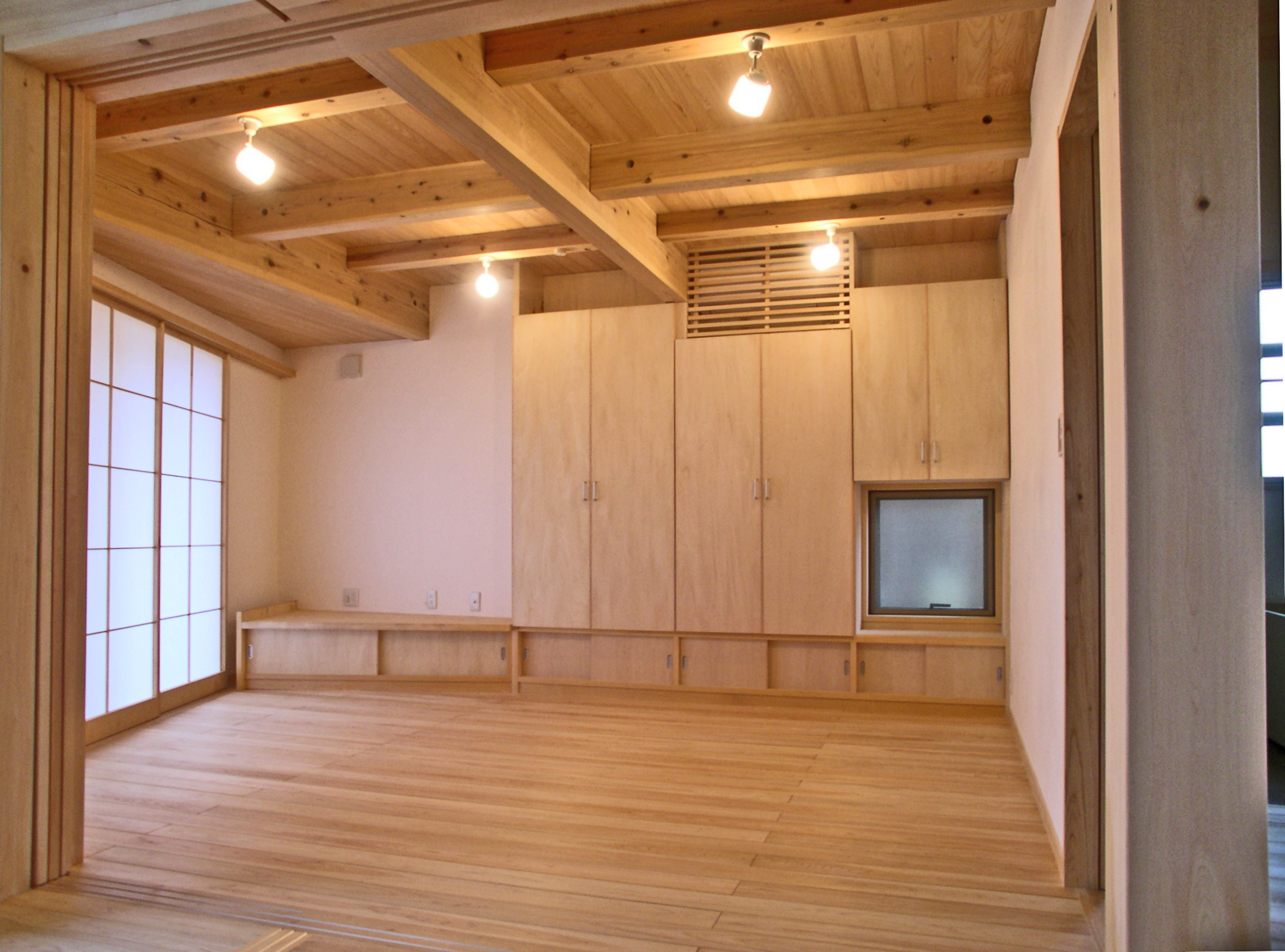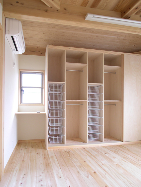 床/桧縁甲板 壁/珪藻土塗り 天井/杉板